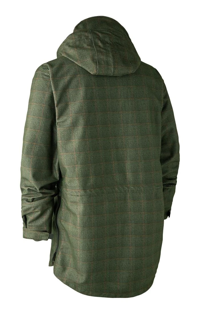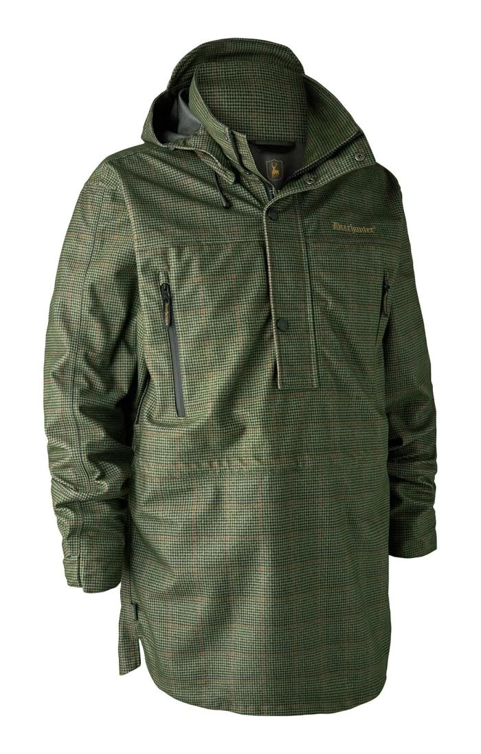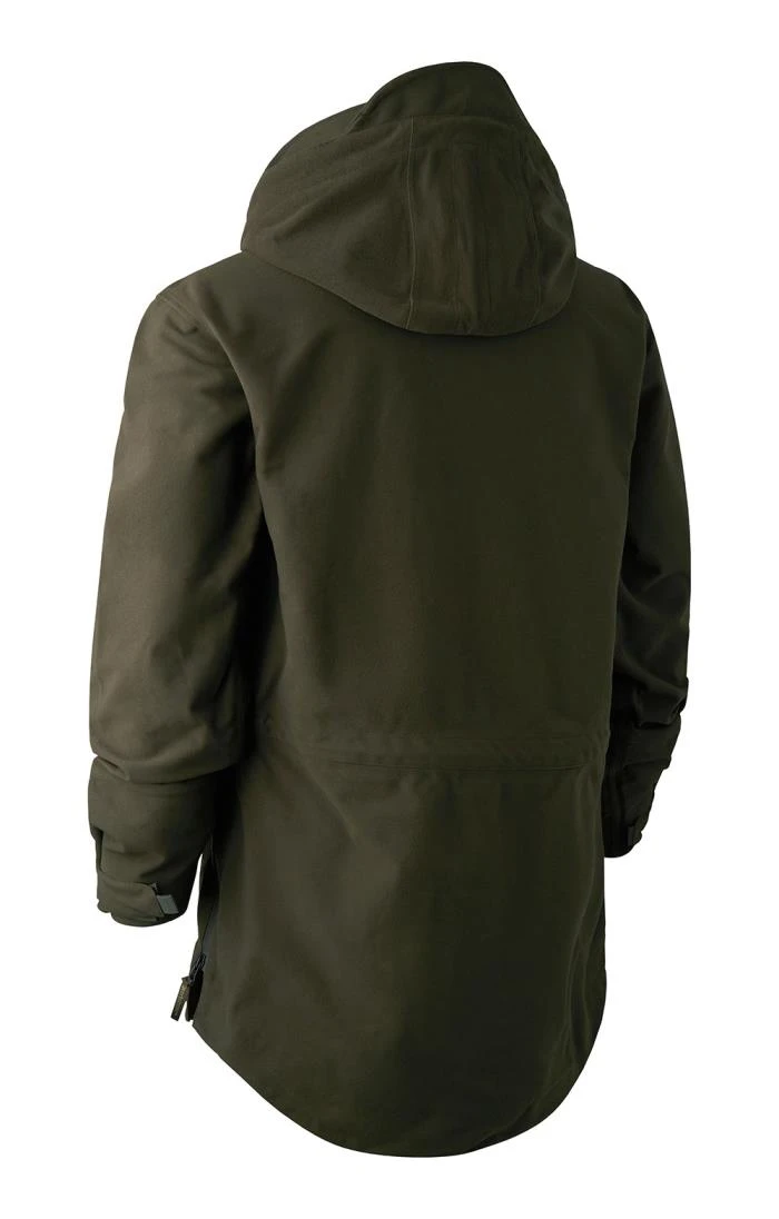 The Pro Gamekeeper smock from Deerhunter is an inimitably stylish alternative to the traditional stalking jacket. Featuring adjustable sleeves, waist and bottom as well as a detachable hood and neoprene storm cuffs, this smock is fully wind and waterproof, but also breathable with zippered underarm ventilation for optimum comfort. A short front zipper coupled with a long waterproof zipper to the side allow for ease of wear, while two zippered hand warmer pockets feature at the sides.