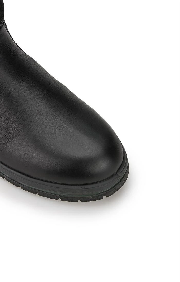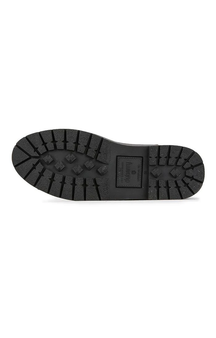 Upper: 100% leather/nubuck. Lining: fleece style material. Heavily ridged rubber block heel.Scrub with fresh tap water- use leather cream.