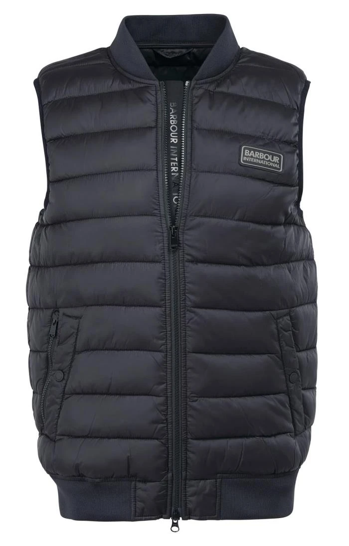 A signature look from an iconic brand, the Barbour International Elgin quilted gilet is a key layering piece to see you through the transitional seasons. Presented with bands of quilted panels, angled lower pockets and comfortable ribbing to the neck and hem, prominent Barbour International badging to the left chest signposts another premium product from the British fashion house.