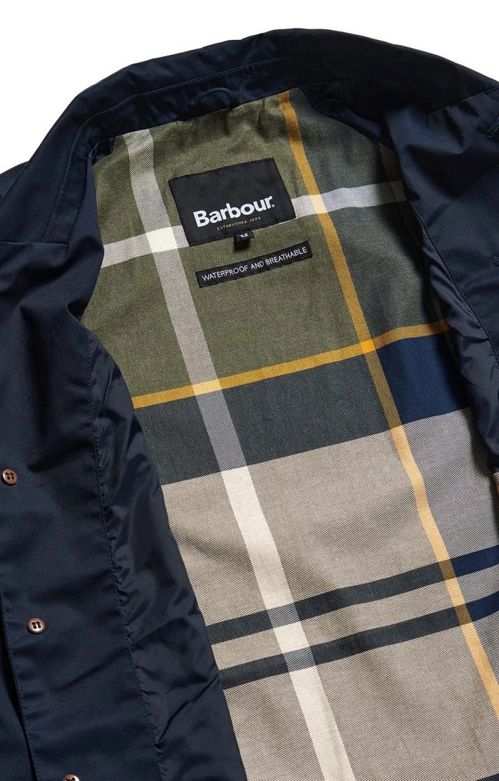 Your smart solution to wet weather dressing, the waterproof Barbour Lorden jacket is cut in a longer length with a neat fold down collar, two front welt pockets and a concealed button fastening. Forecasting a strong sense of style at both formal and informal occasions, the tartan back lining and trims plus branded embroidery indicate your allegiance to one of Britain’s best-loved heritage labels.