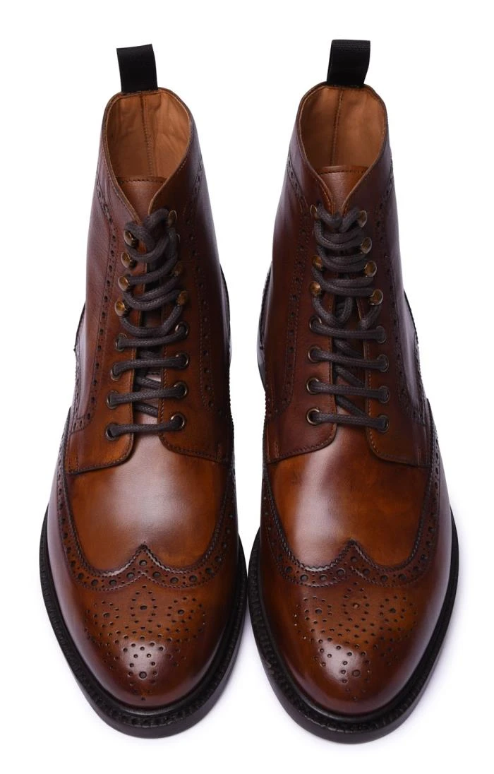 These immaculately crafted brogue ankle boots are classically styled and intricately stitched using premium quality leather, backed up by a resilient leather sole. A flexible and always-fashionable footwear solution for town and country wear, smarten up with sharply cut slacks or wind down to the weekend with soft cords or denims.