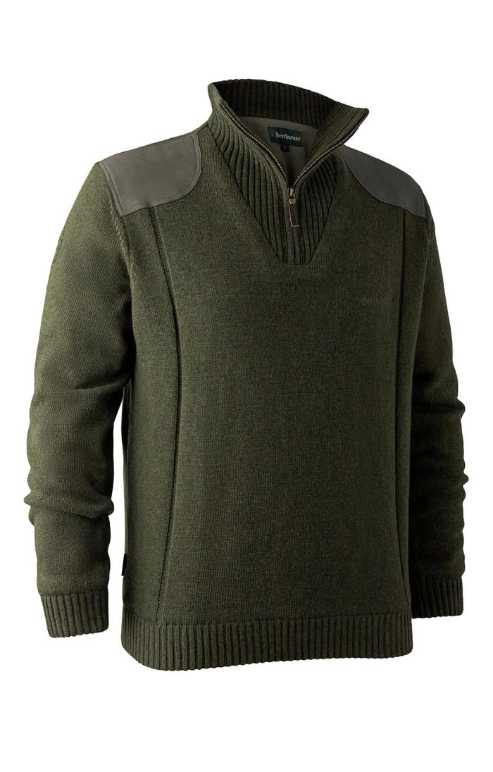 Designed for sporting pursuits, yet with functional qualities that apply across the board, the wool-rich 1/4 zip sweater with Stormliner by Deerhunter is a hard working and hardwearing jumper for all your outdoor activities. Harnessing the natural softness and warmth of lambswool, Deerhunter’s Stormliner membrane adds windproofing and breathability into the equation. Suede patches to the shoulders and elbows and branded embroidery sum things up in signature style.
