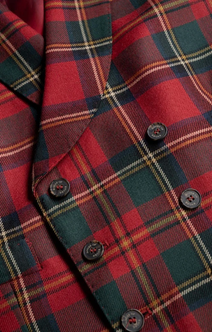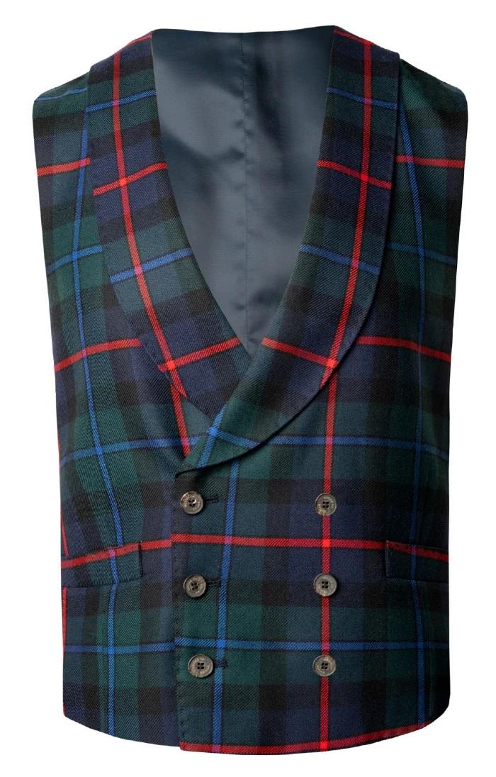 Our men’s double-breasted plaid waistcoat adds an unmistakable dash of Scottish style to any formal event or occasion. In a range of historic plaids and featuring a traditional shawl collar, six-button front fastening and jetted pockets, this characterful waistcoat is a masterfully crafted item that looks fantastic when paired with our matching tartan trousers.