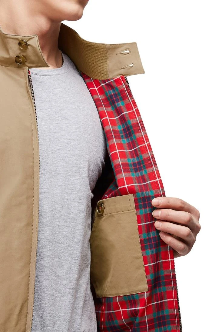 Material: 100% cotton.Fraser tartan lining.Water repellent coating.Internal pocket.Ribbed trims on cuffs and waistband.