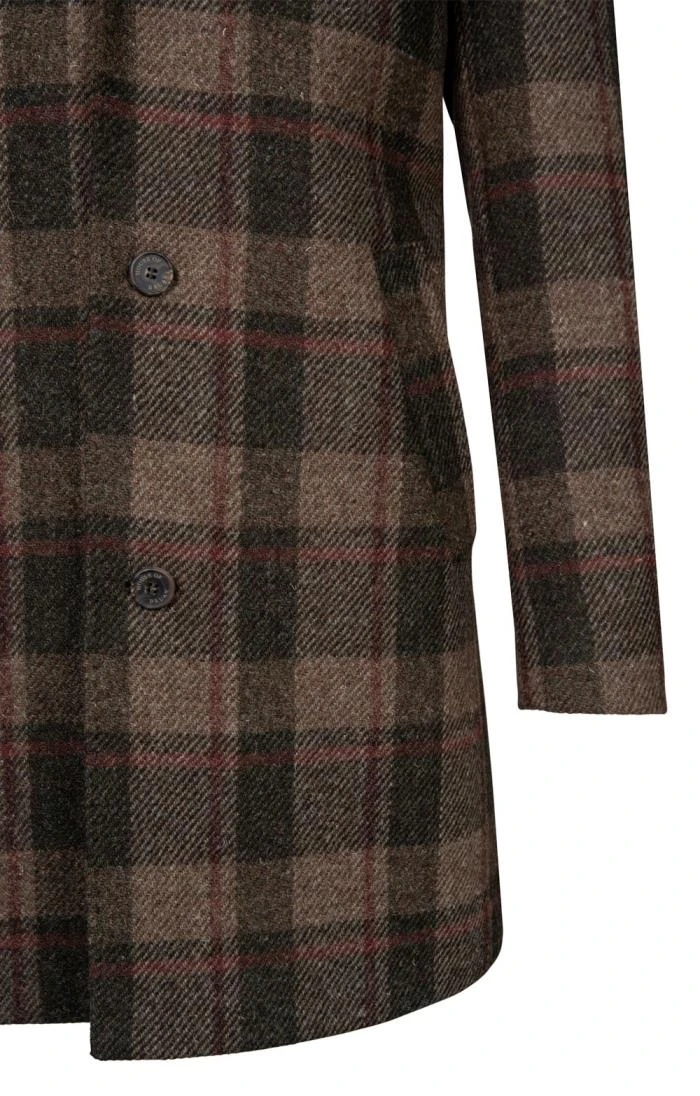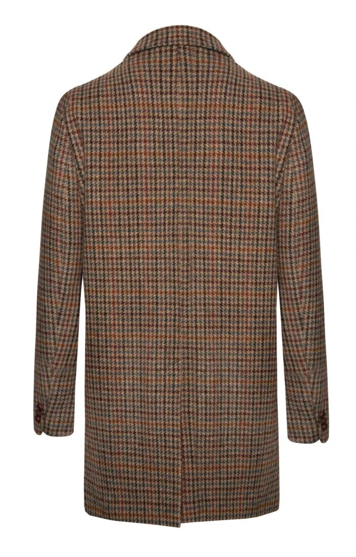 The tight weave and unique depth of colour of handwoven Harris Tweed lends an unmistakeable sheen of quality to this stylish paddock coat. With slanted vertical side pockets and three button cuffs, this coat adds a contemporary edge to a classic style.
