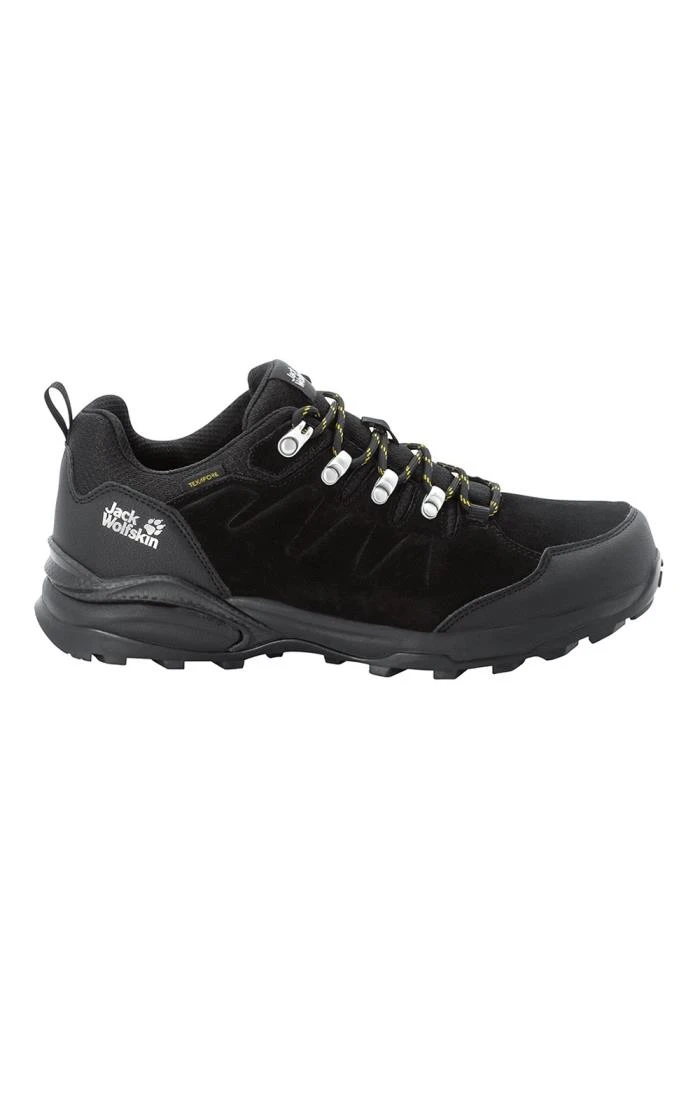 Fully waterproof and breathable thanks to its Texapore membrane, the Jack Wolfskin Refugio Texapore low boot will keep your feet dry and protected on country hikes and city commutes. With a compact shape that makes the bridge between rugged routes and easy walks, there’s no need to sacrifice performance for style in this high-achieving boot. The quality suede leather upper and cushioned EVA midsole combine for a comfortable fit while the rugged tread takes all terrains in its stride. Prominent Jack Wolfskin branding on the stitched heel overlay and tongue, colourful lacing and metal lace hooks are a quality sign off to this special street-to-summit shoe.