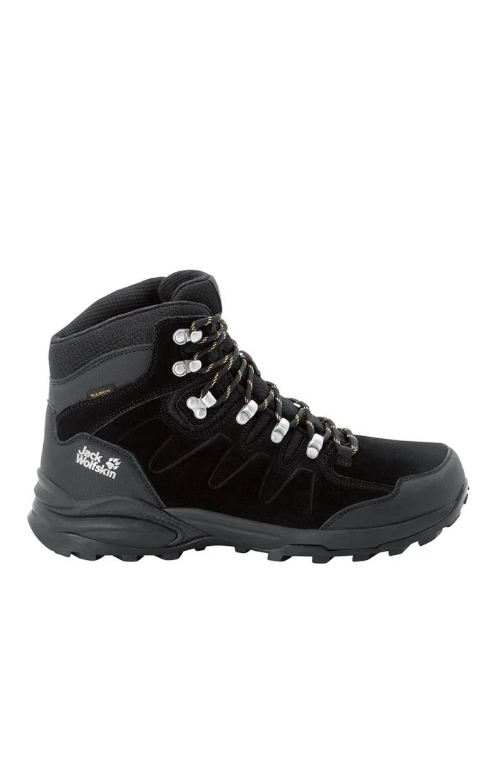 Stay sure-footed across a range of terrains in the Jack Wolfskin Refugio Texapore mid boot. Specifically created for day hiking both on and off-path, the Texapore membrane and suede upper combine to offer excellent waterproofing, breathability and all-day freshness. Keep a spring in your step with the soft textile tongue and cushioned EVA midsole and stay mountain goat secure over hills and dales with the rugged sure-grip sole. The reinforced toe and heel with Jack Wolfskin branding and metal lace hooks give this neat and nifty boot the good looks to match its performance.