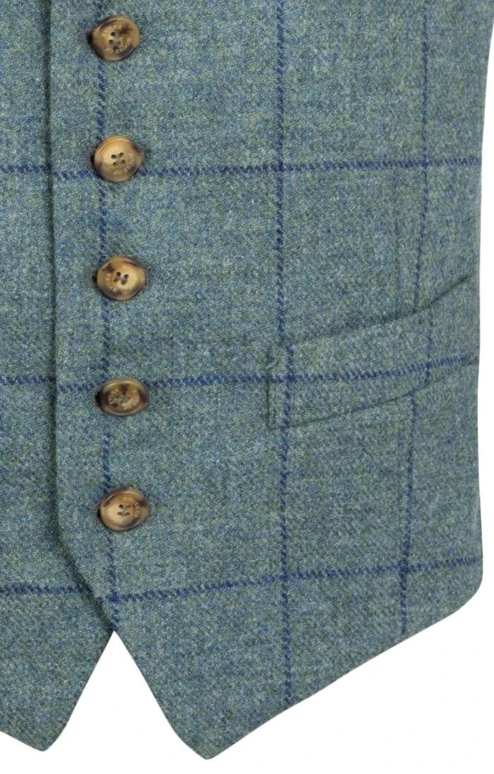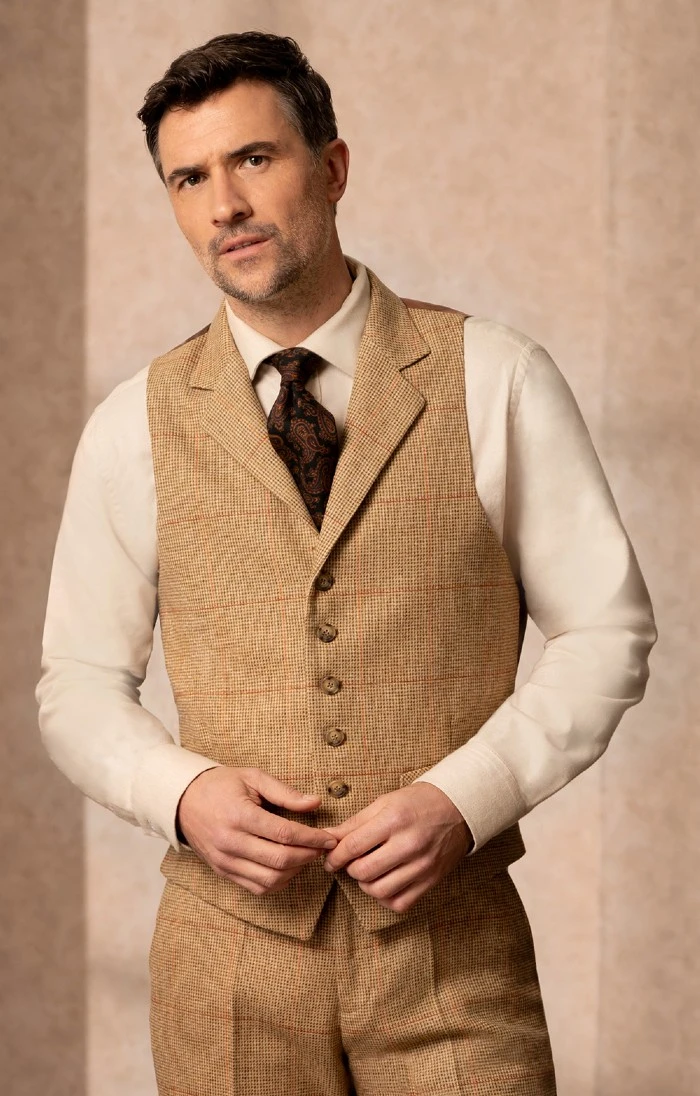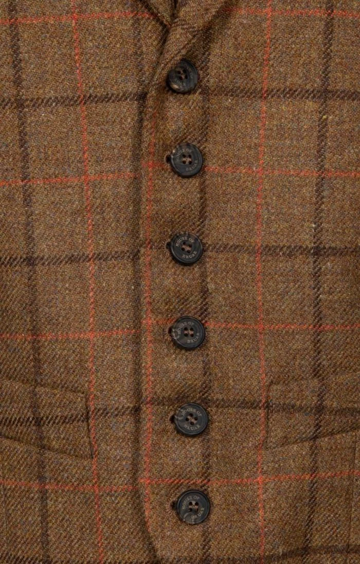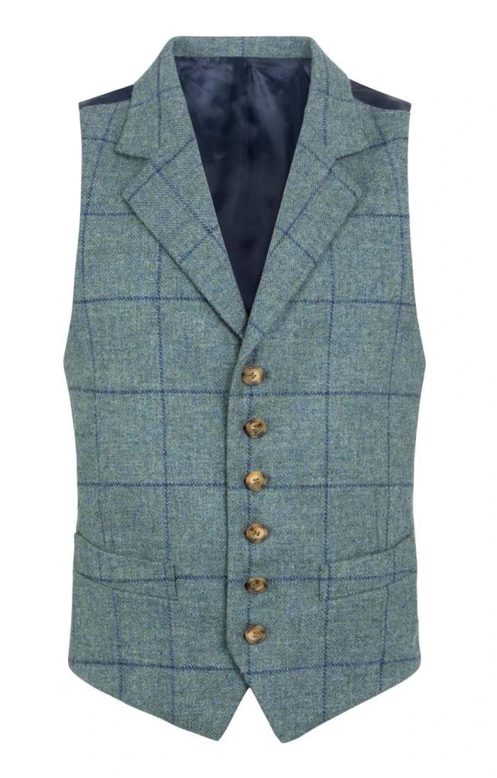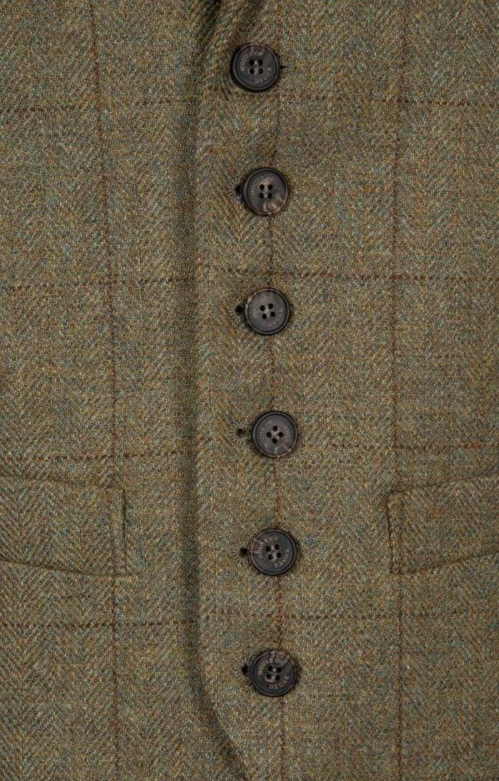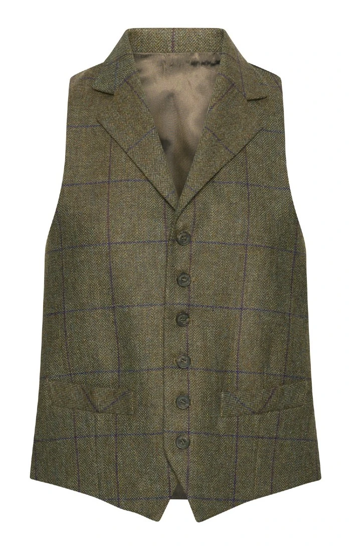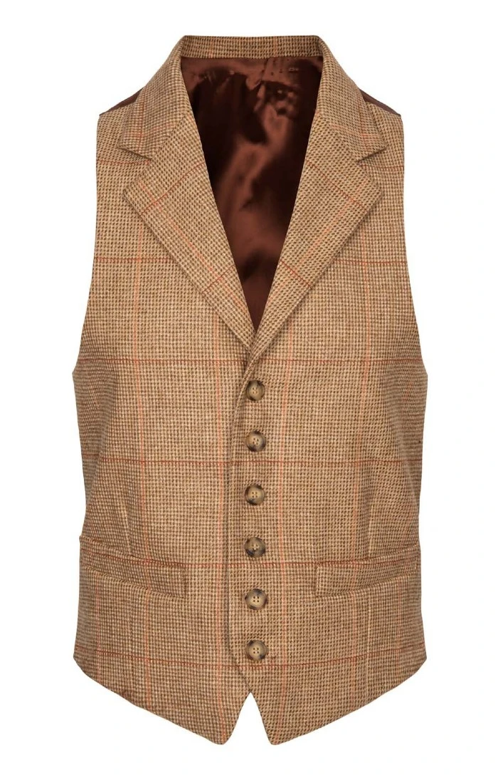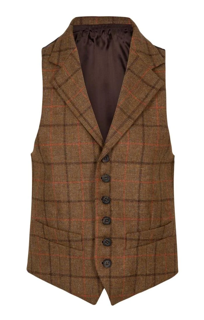 Traditionally styled for an impeccably smart look, this classic waistcoat in beautifully finished Saxony tweed features a six button front, side pockets and a satin back panel.