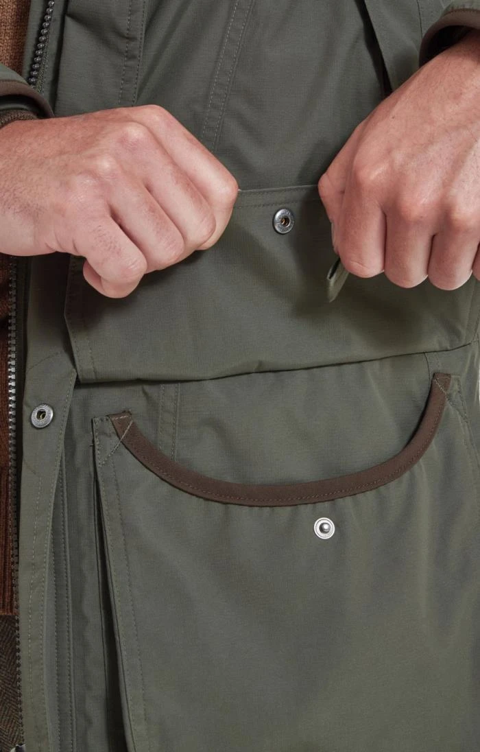 The Schoffel Ptarmigan New Ultralight II mixes classic style with impeccable performance to create a stunning shooting jacket that really stands out from the crowd. 100% waterproof, windproof and highly breathable, it’s an enhanced version of Schoffel’s original Ultralight with a slightly slimmer fit and a more sporting cut. A Venturi two-layer laminate provides 20K waterproofing and 20K breathability for excellent bad weather protection, while microfleece handwarming pockets with storm flaps offer protection for cold hands. It also features large reinforced bellows cartridge pockets with drainage holes and retainer straps for easy access, a two way YKK front zip, elasticated storm cuffs and a detachable hood. Two internal zipped security pockets provide safe storage for valuables, and, thanks to its lightweight and non-insulated construction, it can even be packed away into its own pocket for easy stowage. Machine washable and quick drying, it’s the ideal year-round shooting coat for anyone who is serious about their sport.