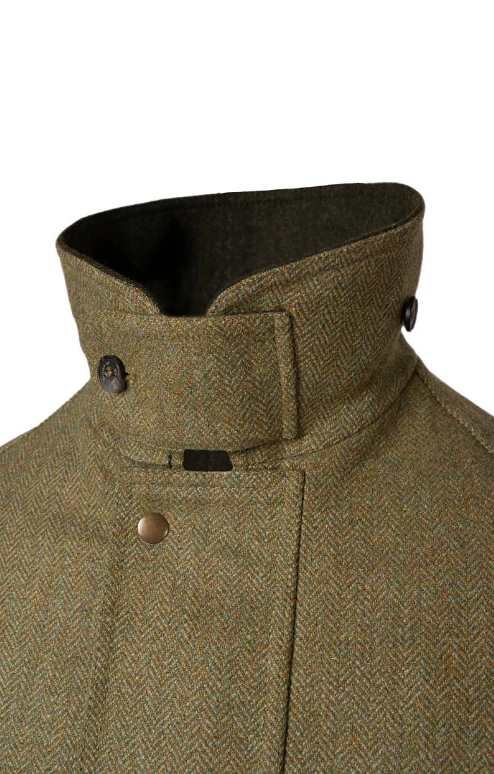 A modern take on a handsome country classic, this Scottish Saxony tweed shooting coat will keep you warm, dry and stylish. Cut to a comfortable fit from the finest tweed fabric, this jacket features two spacious bellows pockets to the front and hand warming pockets above, as well as a storm placket with push stud closure to keep you warm. Contrast collar and cuffs lend definition to this instant classic.