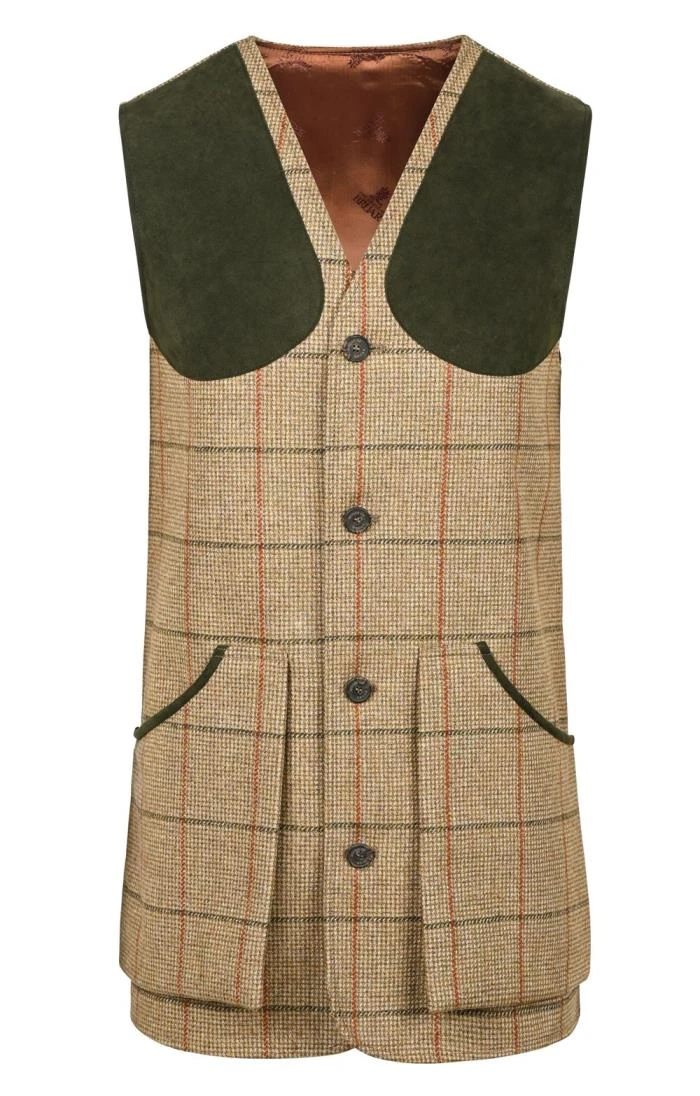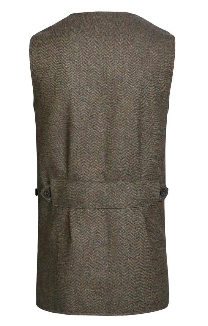 Impeccably crafted from exquisite new wool, this men’s Scottish Saxony tweed waistcoat epitomises classic country living. Featuring a four button closure, deep patch pockets and accent shoulders, this contemporary sleeveless layer is fully lined for a beautiful finish and is the quintessential finishing touch to any Highland-inspired outfit.