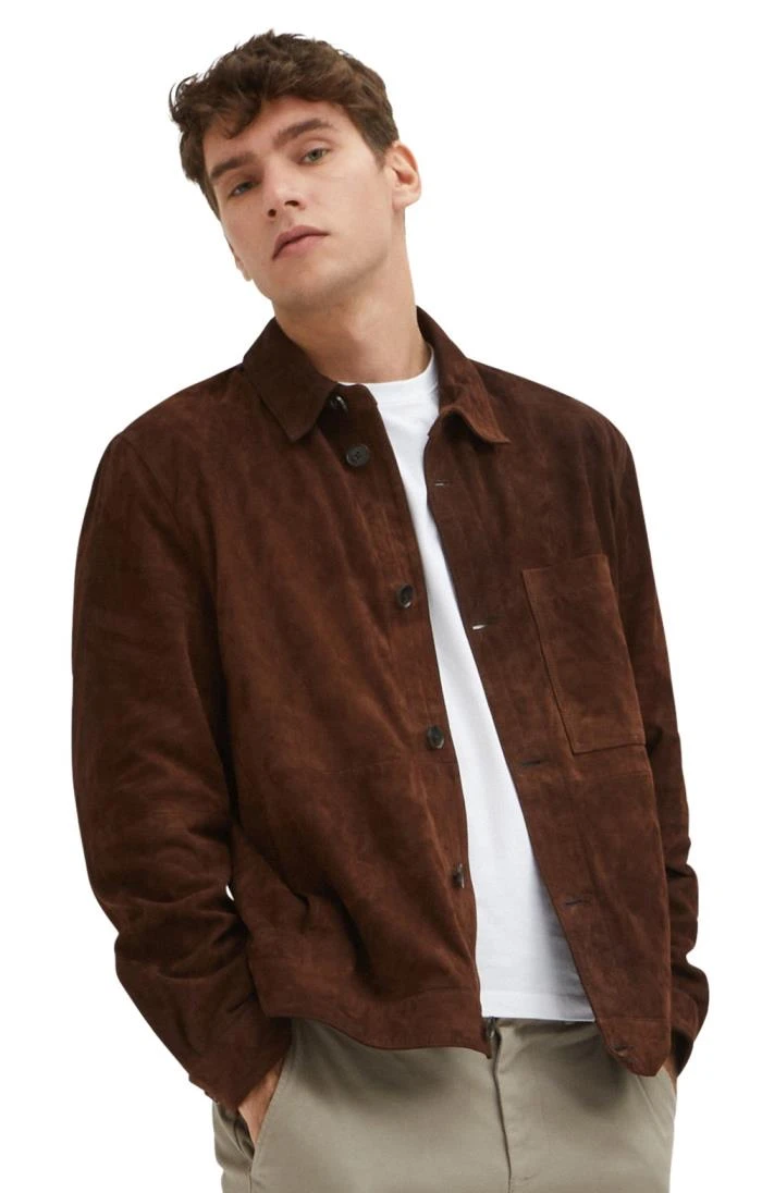 This men’s suede overshirt is crafted from premium fabric and doubles effortlessly as a lightweight summer jacket. Inspired by a classic shirt design, and featuring a standard spread collar and full length buttoned placket, this outsized cotton jacket layers up easily over your favourite T-shirts and under sleeveless gilets.