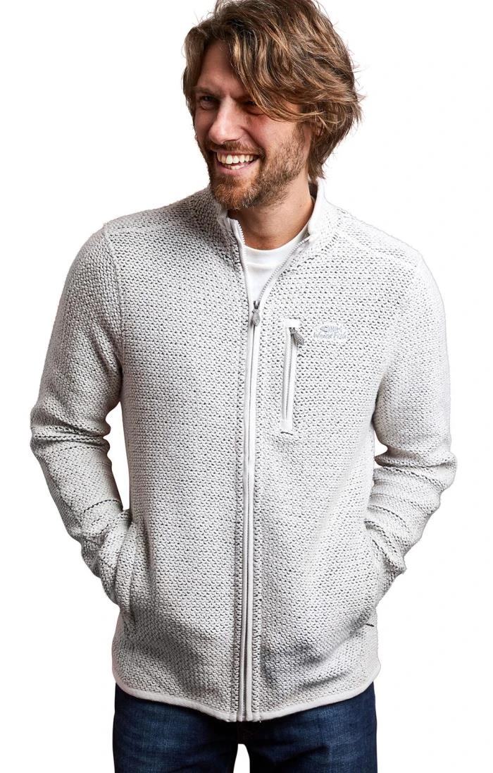 The men’s Weird Fish Transom Macaroni jacket is a hardwearing yet stylish coat that offers a lot of versatility. Woven from organic cotton and recycled polyester, the jacket features two zipped hand pockets and a third pocket on the chest. The waffle-style knit is synonymous with the Weird Fish brand and the full zip closure makes it both easy-to-wear and extra warm.