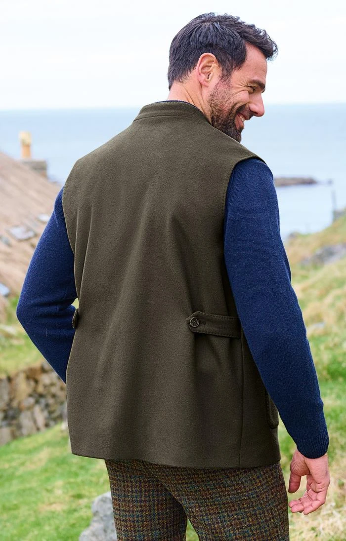 This sharply cut waistcoat showcases a smart yet sporty shape, while the AMF stitching creates a smooth line and an unmistakable mark of tailored quality. Buttoning to a stand collar with lower patch pockets and a welted chest pocket, this sleek wool and cashmere creation adds a dapper finish to your casual style.