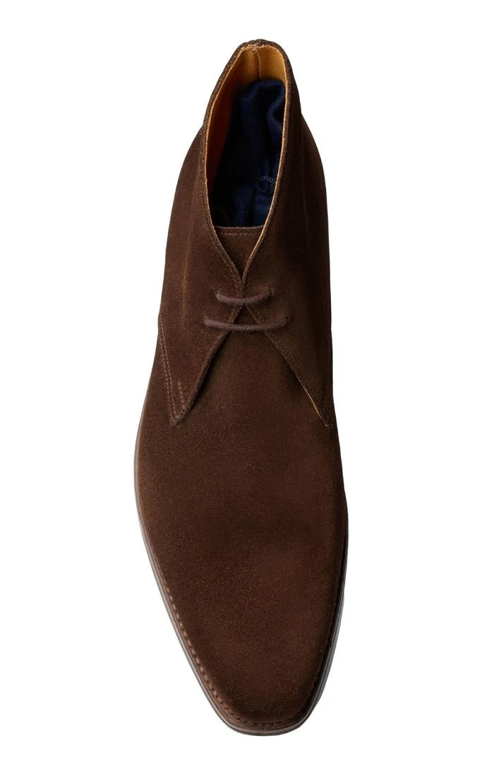 A plain fronted chukka boot made from the finest materials with Dainite rubber soles.