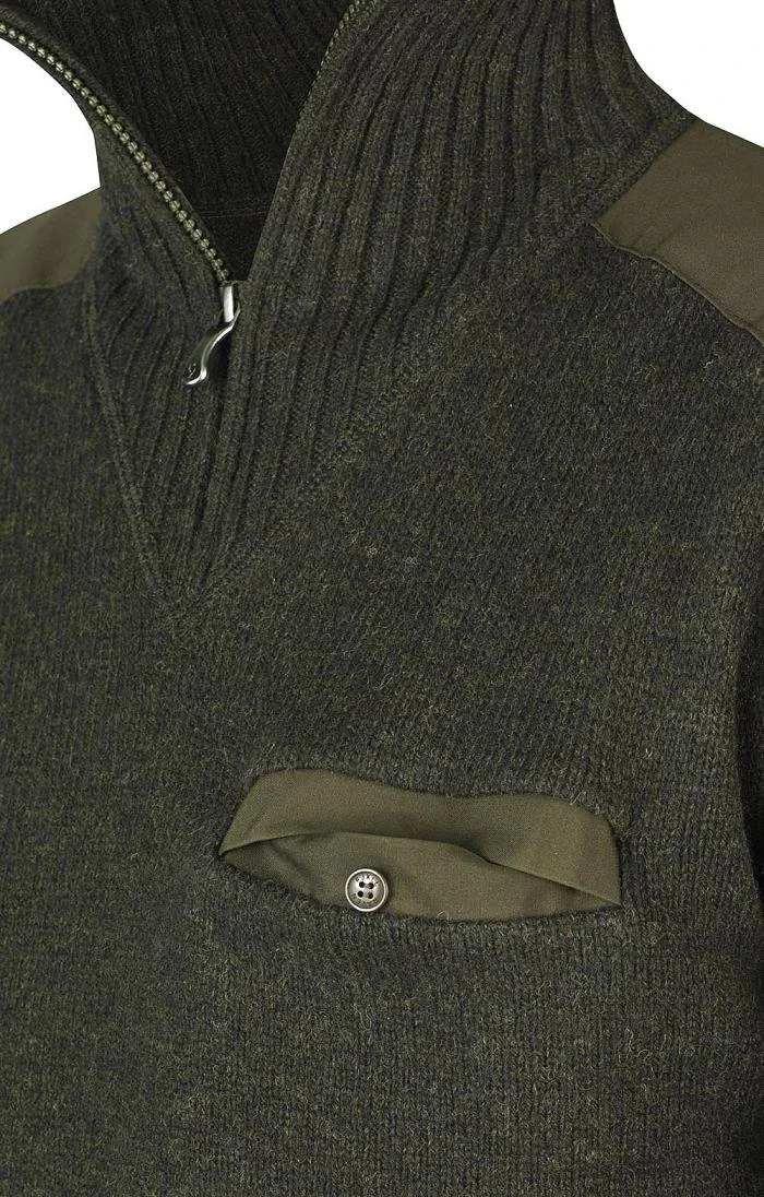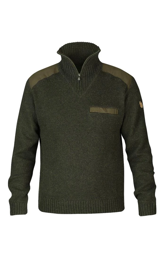 Classic hardwearing wool sweater in a comfort fit. Half zip collar. Reinforcement patches in G-1000 original at elbows and shoulders. 1 chest pocket.