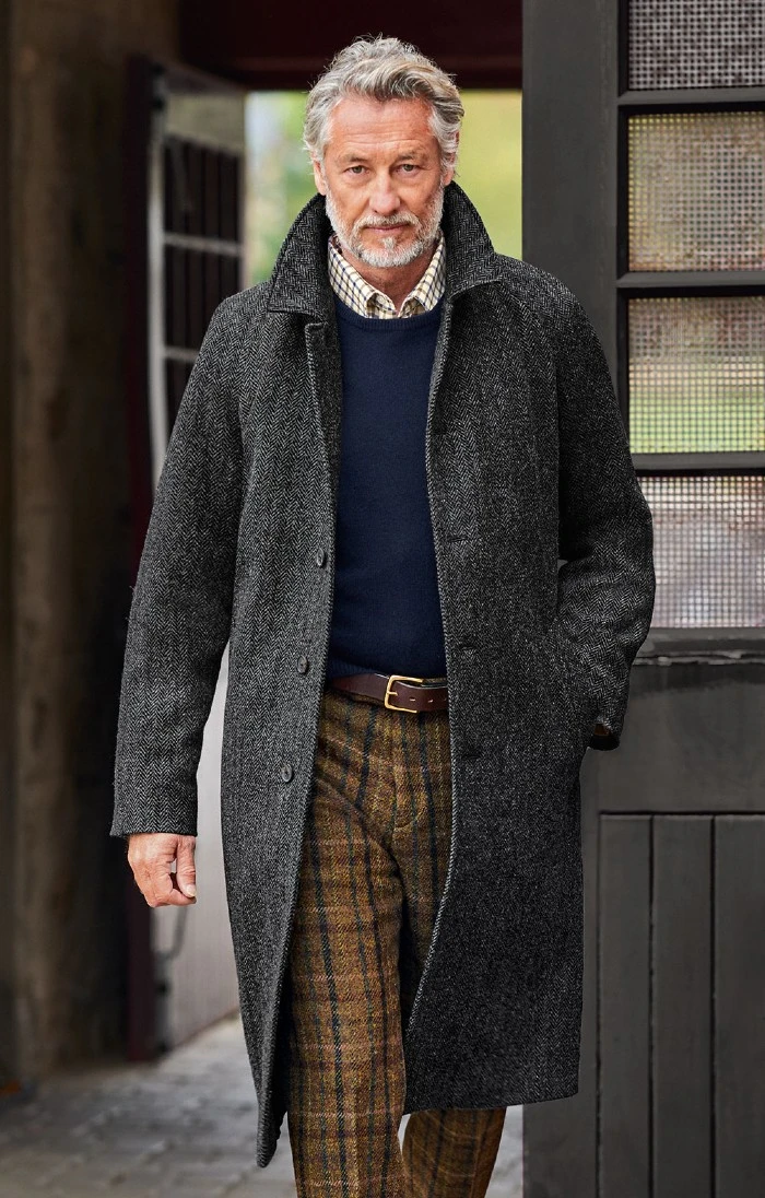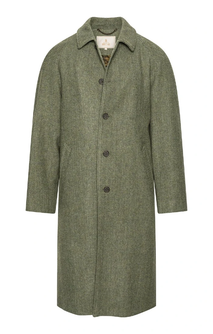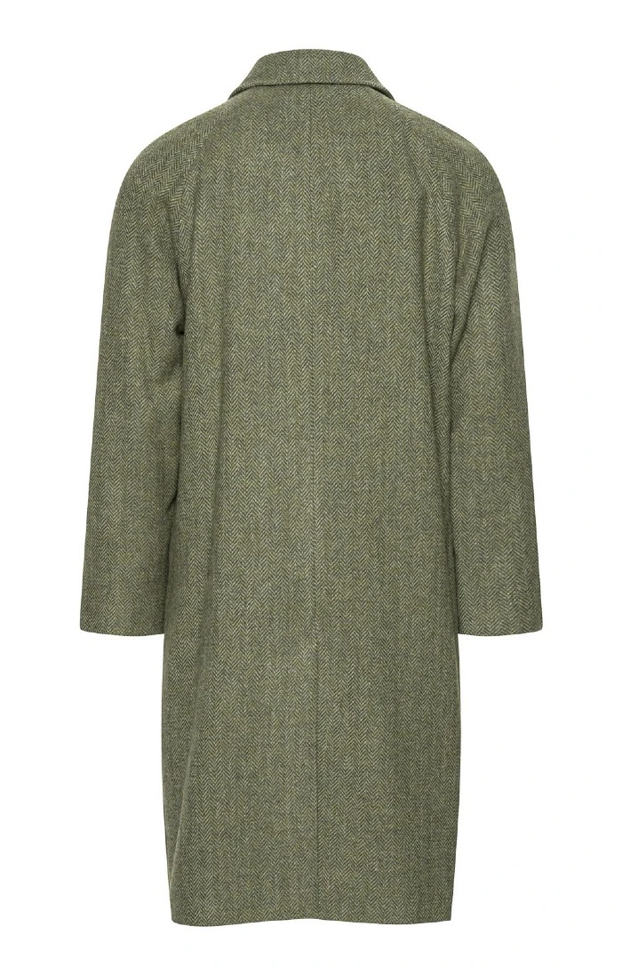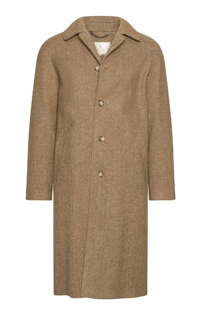 Produced in a pure new wool heavyweight herringbone tweed, this stunningly smart coat harks back to classic raglan designs of the past, with the distinctive shape updated for a more contemporary feel. Striking detailing completes the look, with slanted side pockets, horn buttons, two inside pockets and a flash of felt beneath the collar for a final touch of classic style.