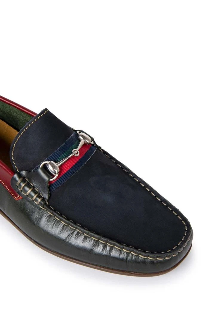 With a flash of colour lending a contemporary twist to a classic design, these snaffle loafers are not to be missed. Boasting stylish snaffle bit detailing at the top, this loafer features a complementary combination of red, blue and green colouring as well as contrast stitching at the toe and a comfortable sole.